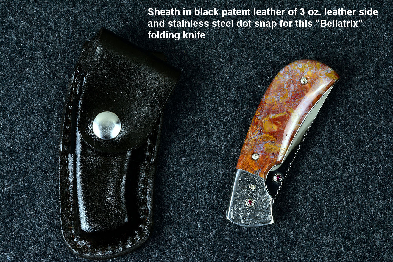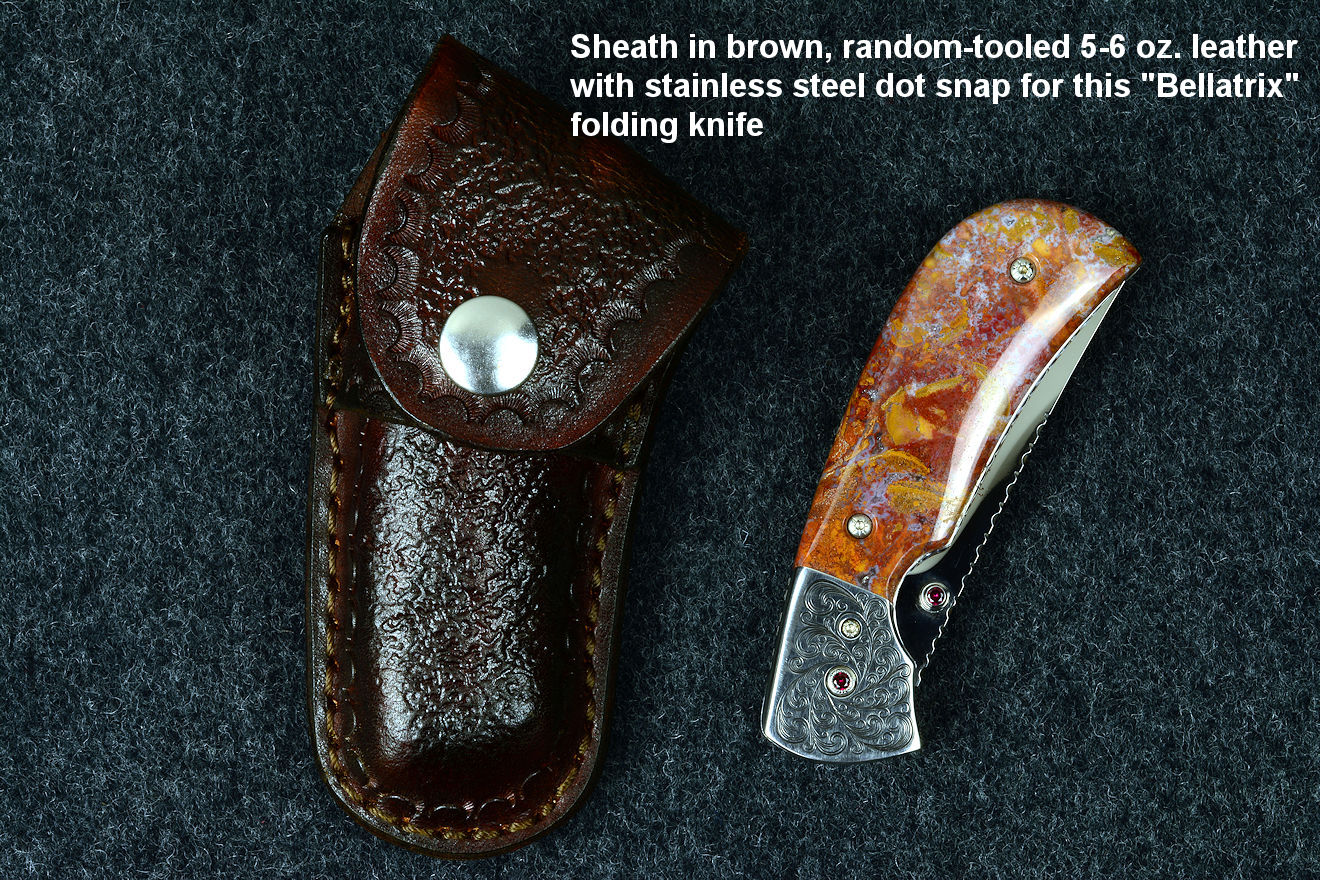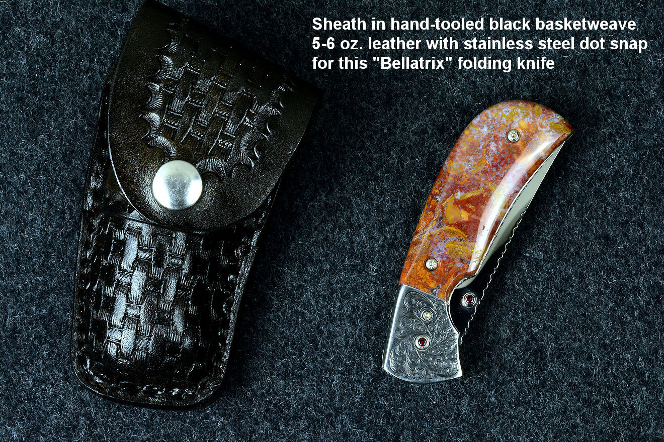 I work very hard to build a fine sheath to fit the specific knife, to compliment the knife as well as protect the knife and the wearer. The color schemes match the handle materials and blades, the styles, tooling, inlays, and curves match my artistic intention for the knife. My military grade combat and tactical sheaths are probably the best and toughest made out there; I've never seen any better. Yet just like with my knives, I'm continuing to learn on every sheath I make.