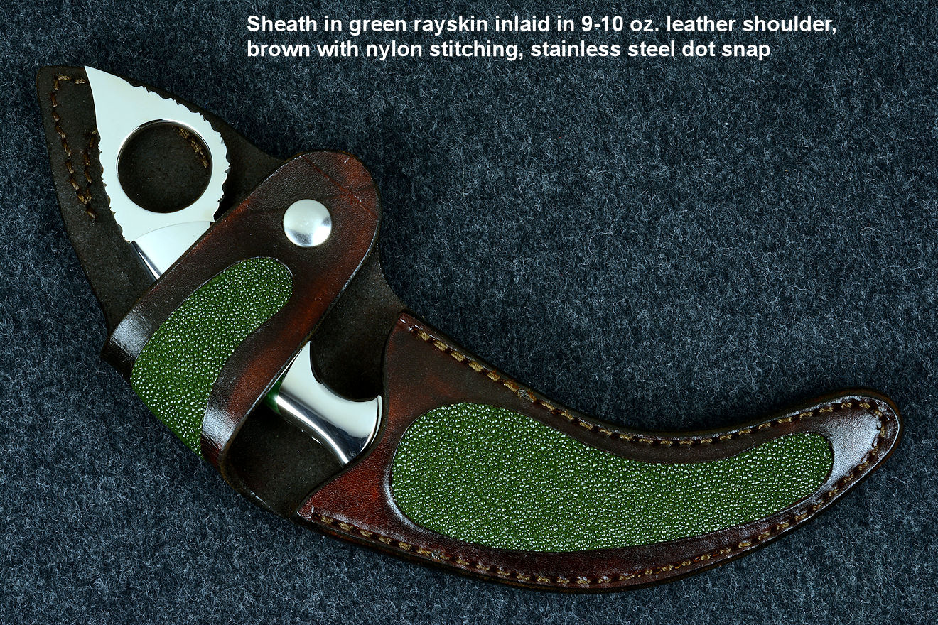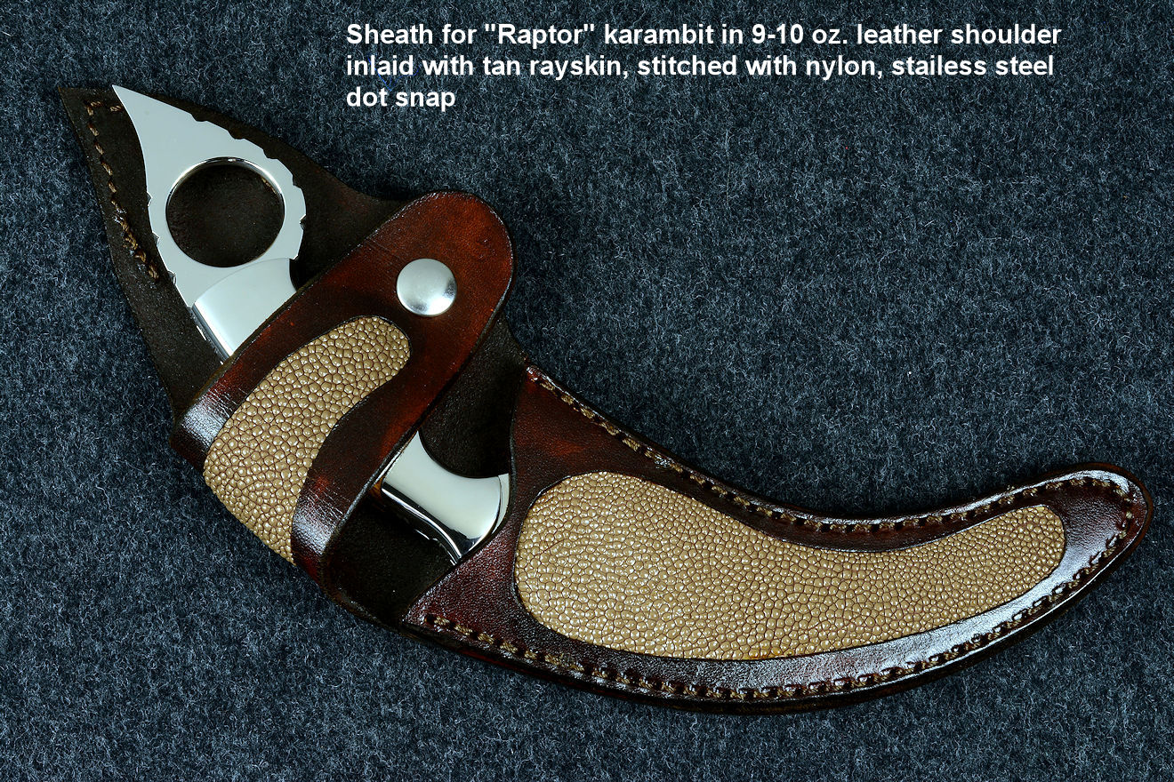 I realized many years ago, when I first started in this trade, that sheaths, stands, cases, and accouterments were all a part of the trade of making fine handmade and custom knives, and if I wanted to provide a complete package, then it better include a fine sheath: tough, strong, and well-made to match the knife while being commensurate with the quality of the knife.